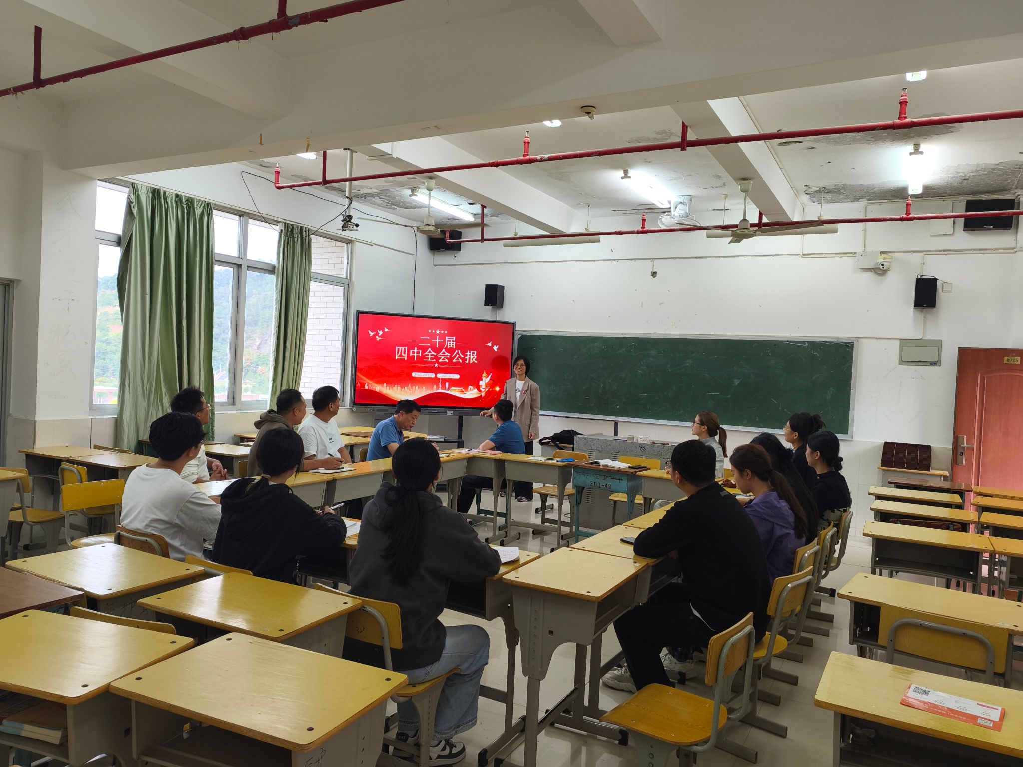 党支部书记林妙端作专题领学,系统解读了全会公报核心内容,重点阐释了“坚持和完善中国特色社会主义制度、推进国家治理体系和治理能力现代化”的总体目标、重点任务和实践路径。他强调:“制度稳则国家稳,制度强则国家强。青年党员要增强制度自信,自觉尊崇制度、严格执行制度、坚决维护制度,在实习实践和社会服务中展现青年担当。”