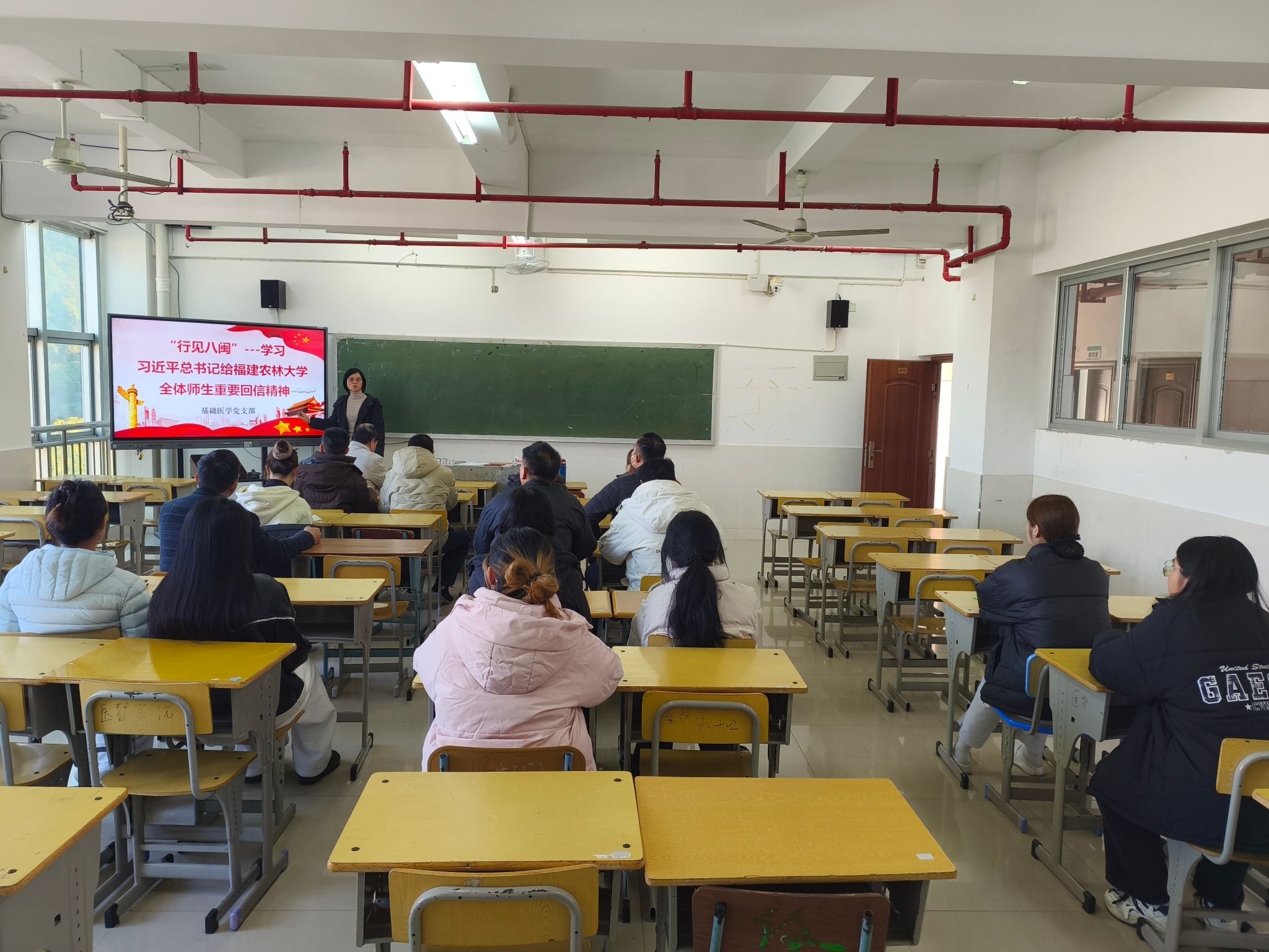 2025年11月03日,基础医学党支部召开专题学习会,深入领会习近平总书记给福建农林大学全体师生的重要回信精神,结合工作实际研究贯彻落实举措。支部书记林妙端主持会议,党员老师、部分学生代表列席学习。