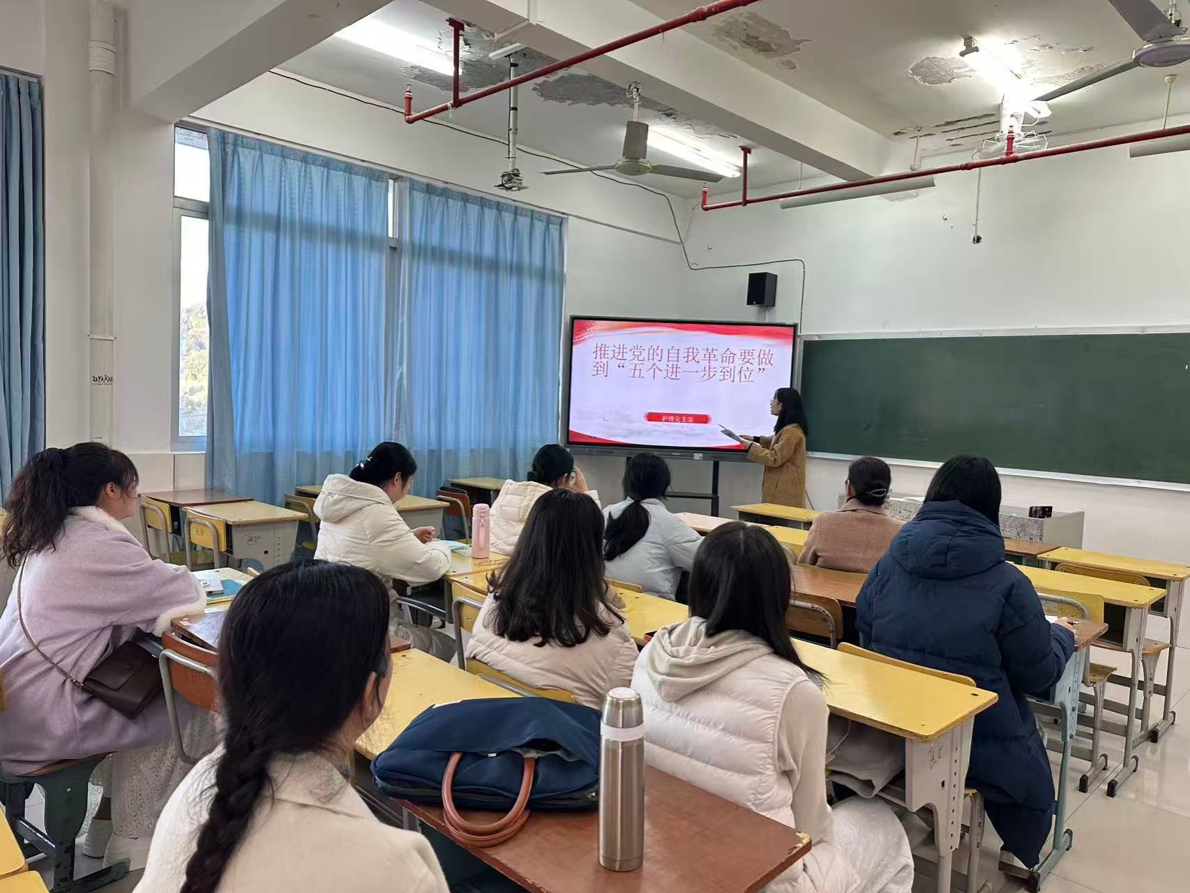 为深入贯彻全面从严治党要求,推动党的自我革命在高校护理领域落地生根,12月30日,护理党支部开展了一场意义深刻的推进党的自我革命要做到“五个进一步到位”学习会。此次会议由党支部书记钟志晖主持,全体党员教师齐聚一堂,在思想的碰撞与交流中,凝聚起推进自我革命的强大力量。